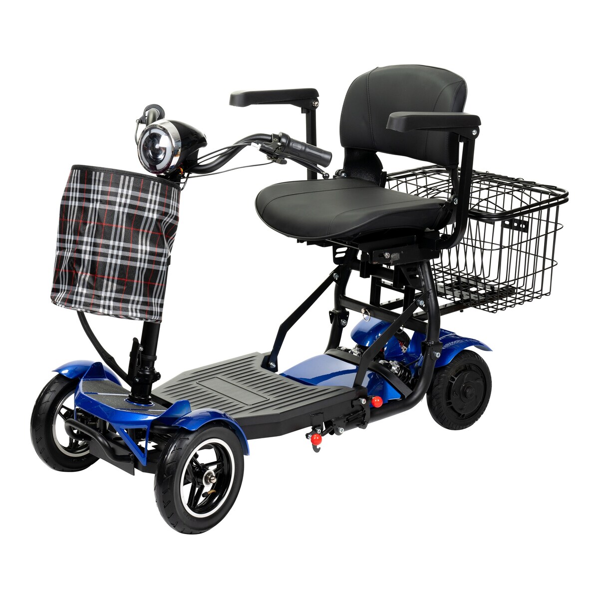 Praktische Extras wie ein geräumiger Korb und eine zusätzliche Tasche bieten ausreichend Stauraum für persönliche Gegenstände oder Einkäufe. Die 10-Zoll luftgefüllten Vorderräder und die 8-Zoll gegossenen Hinterräder sorgen für eine stabile und angenehme Fahrt auf unterschiedlichen Untergründen.