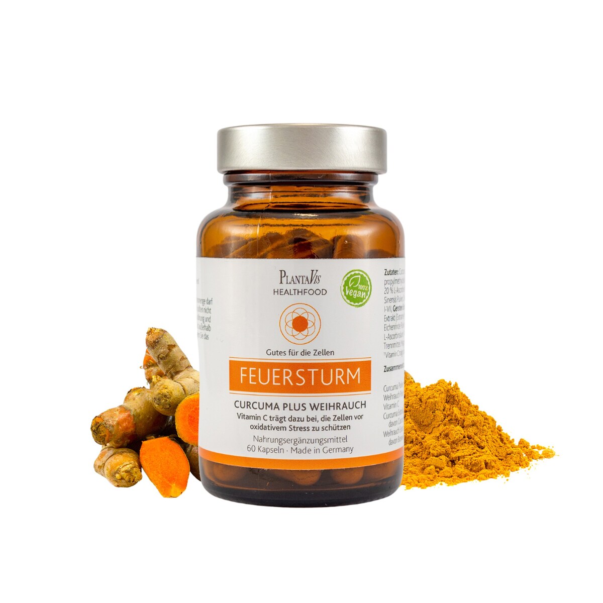 Die Kombination der beiden Naturstoffe Curcuma und Weihrauch mit einem speziellen ZellschutzKomplex schafft vielfältige Einsatzmöglichkeiten der FeuerSturm Kapseln.